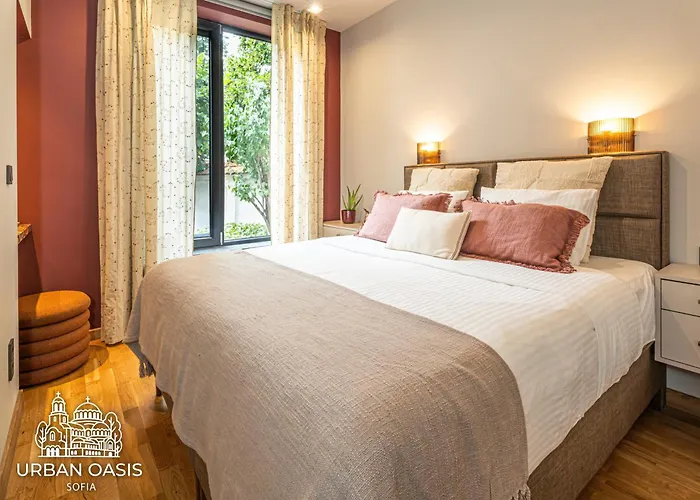 Apartmentul Urban Oasis Sofia Apartment de 45 m², întâmpină călătorii în centrul orașului Sofia, situat la 14 minute de mers pe jos de Moscheea Banya Başi. Situat nu departe de Teatrul Național „Ivan Vazov“, acest apartament cu o terasă are vedere la grădină.